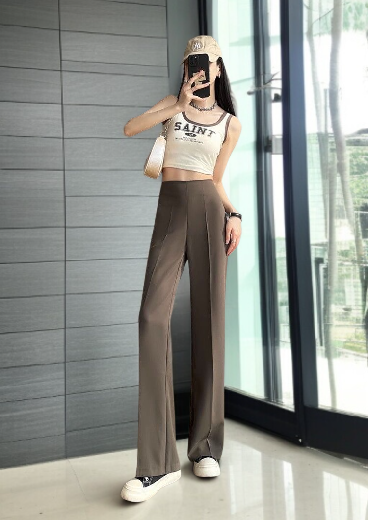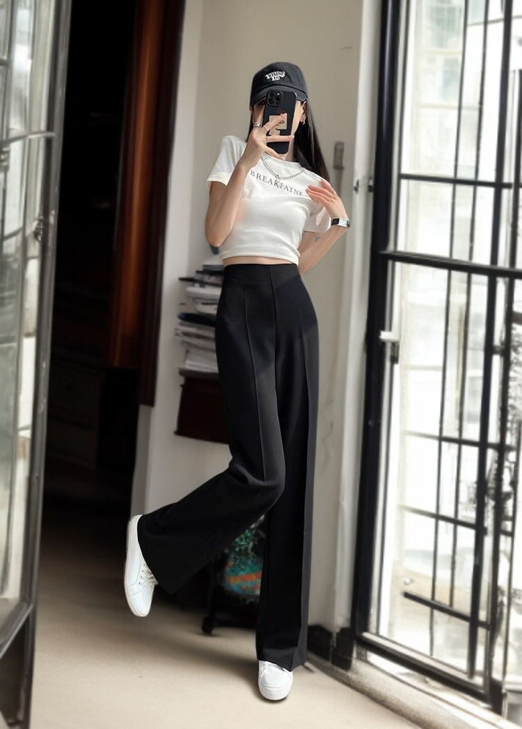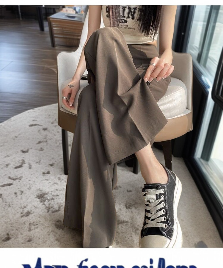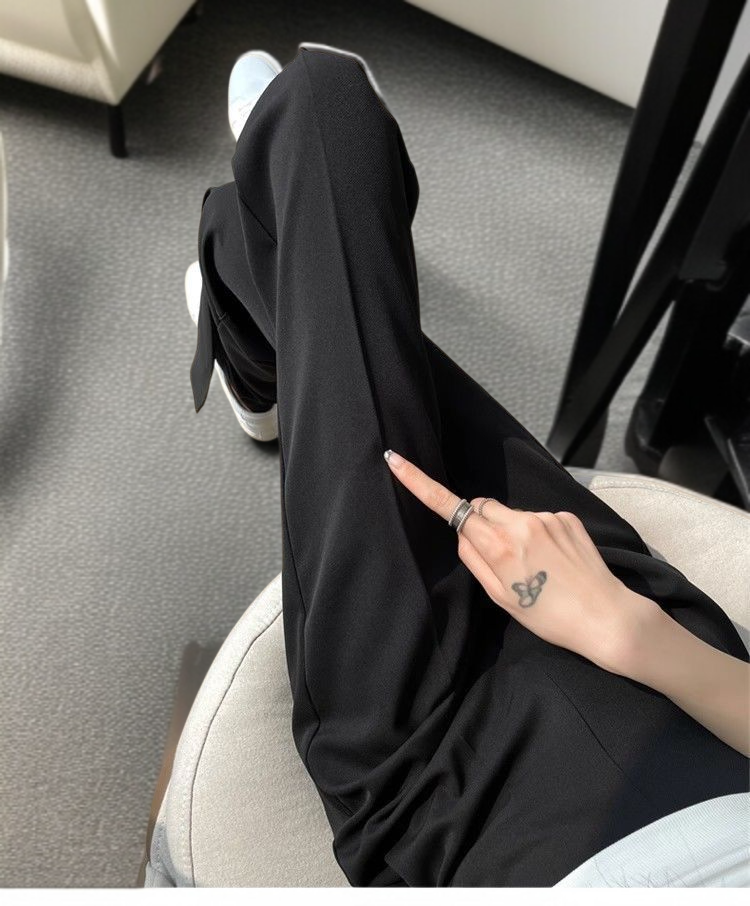 여성 봄가을 작은 키 슬림 와이드 팬츠 처짐 옆 지퍼 정장 팬츠 힙업 일자 팬츠 하이웨스트 캐주얼 팬츠
