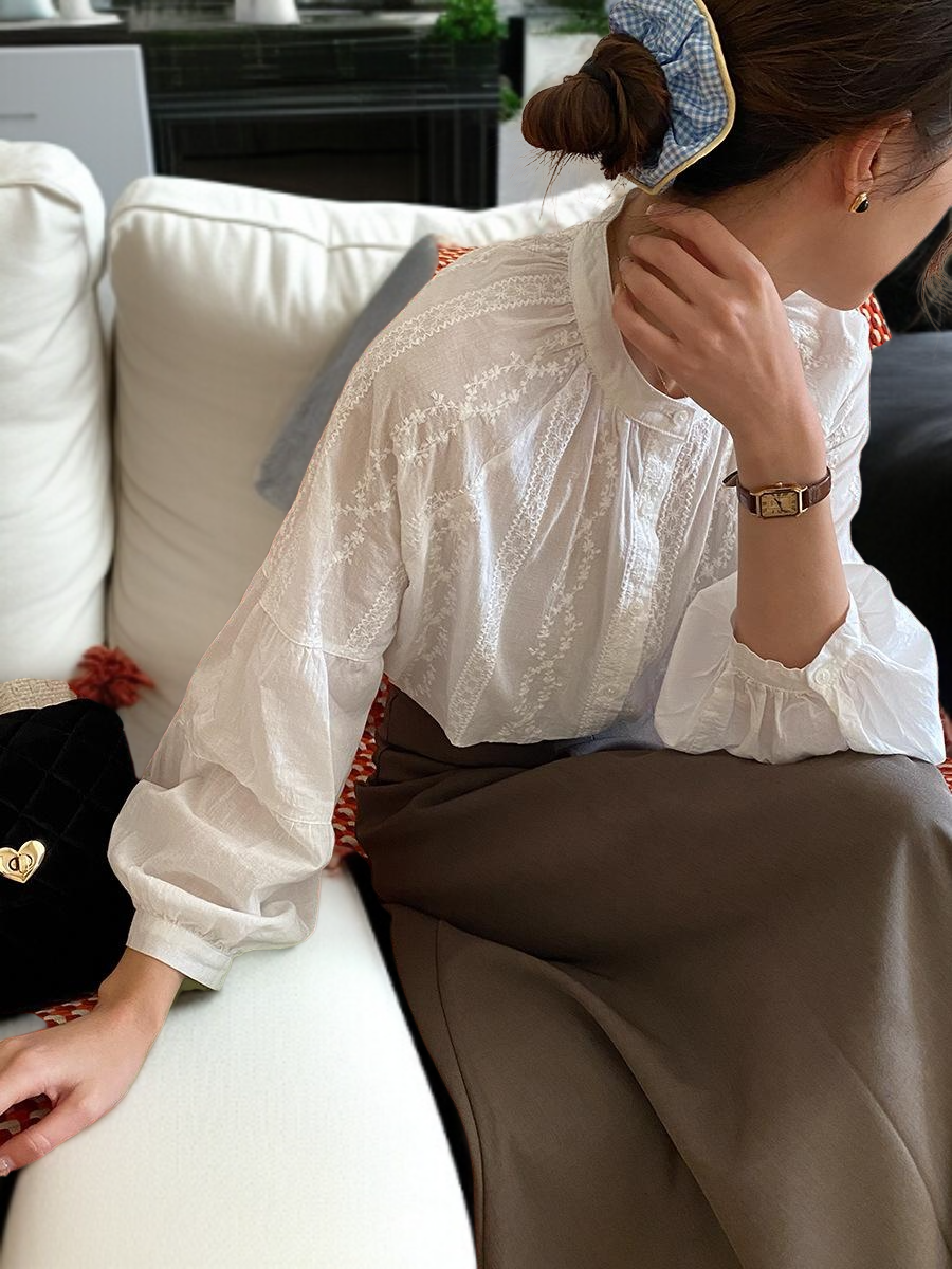 ● 로맨틱한 레이스 디테일과 볼륨감 있는 벌룬 소매 디자인으로 봄철 여성스러운 분위기를 연출해주는 셔츠입니다. ● 가볍고 부드러운 소재로 제작되어 피부에 자극 없이 쾌적하게 착용할 수 있으며, 데일리룩부터 데이트룩까지 다양한 스타일에 잘 어울립니다. ● 트렌디한 벌룬 소매와 섬세한 레이스 장식이 조화를 이루어 우아하면서도 세련된 느낌을 선사합니다. ● 간편한 버튼 여밈과 넉넉한 핏으로 활동성이 뛰어나며, 봄철 레이어드 코디에 활용도가 높은 아이템입니다.
